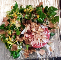 Biancoaccompagnato da Insalata di Valeriana alloZabaione d'Uovo e Tartufo